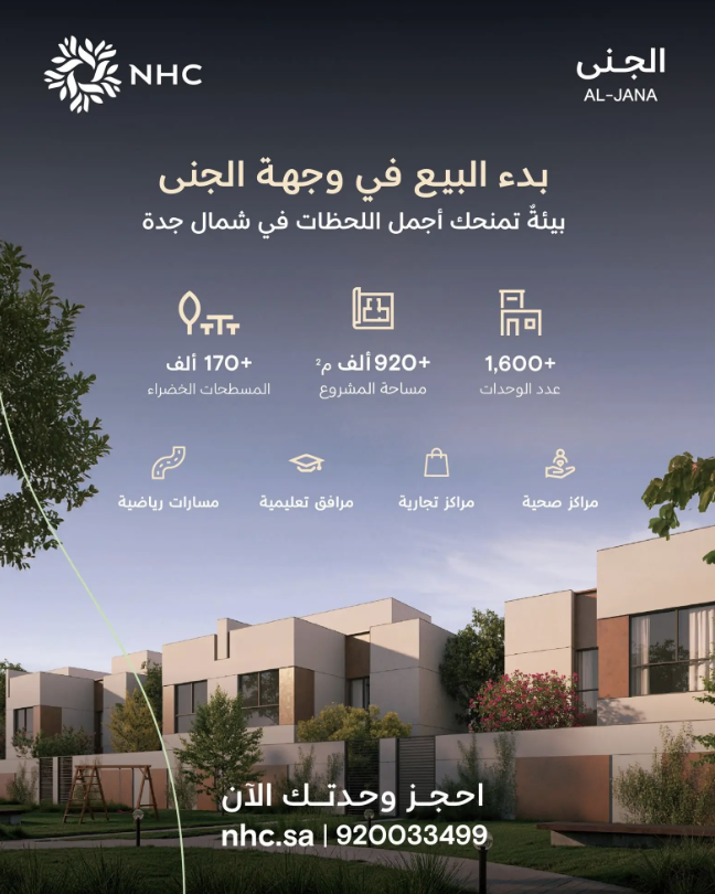 NHC تُعلن بدء البيع في أحدث وجهاتها شمال جدة "وجهة الجنى"