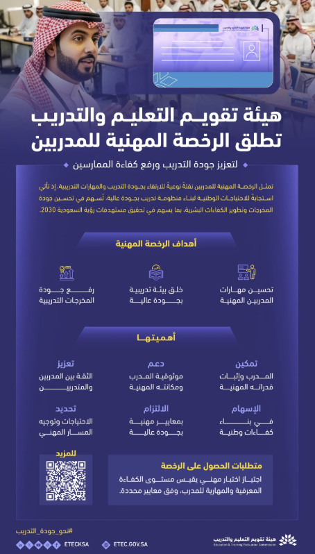 هيئة تقويم التعليم والتدريب تُطلق الرخصة المهنية للمدربين لتعزيز جودة التدريب ورفع كفاءة الممارسين