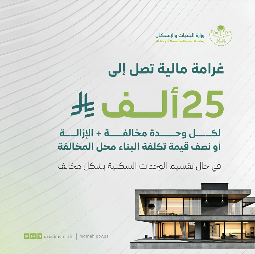 "البلديات والإسكان" تُقرّ تحديثات لائحة الجزاءات عن مخالفات البناء وتقسيم المباني إلى وحدات غير مرخّصة