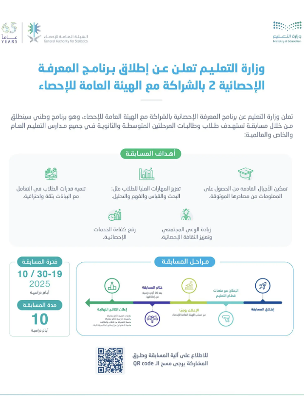 الهيئة العامة للإحصاء تطلق النسخة الثانية من برنامج "المعرفة الإحصائية" بالتعاون مع وزارة التعليم