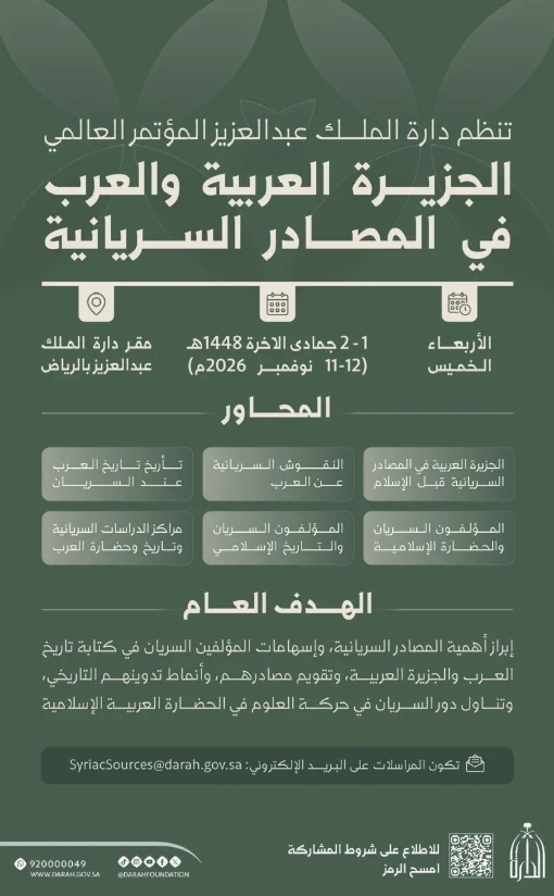 دارة الملك عبدالعزيز تنظم مؤتمرًا عالميًا عن الجزيرة العربية والعرب في المصادر السريانية