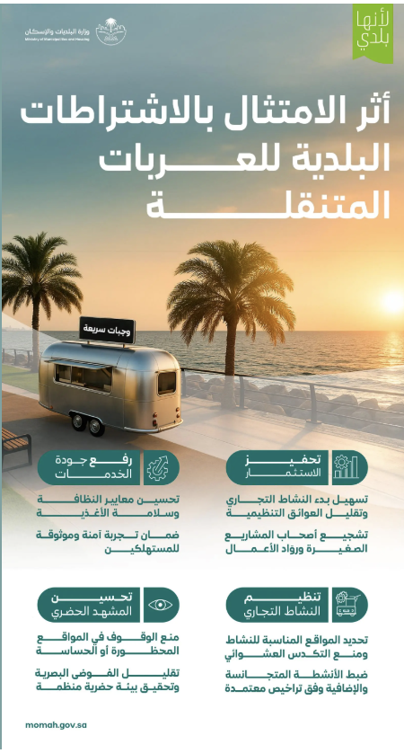 "البلديات والإسكان" تعتمد اشتراطات لتنظيم العربات المتنقلة ورفع معايير الامتثال والسلامة