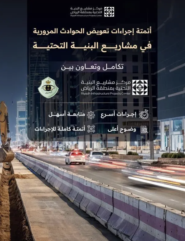 مركز البنية التحتية يطلق خدمة مؤتمتة لتعويض الحوادث المرورية المرتبطة بأعمال مشاريع البنية التحتية