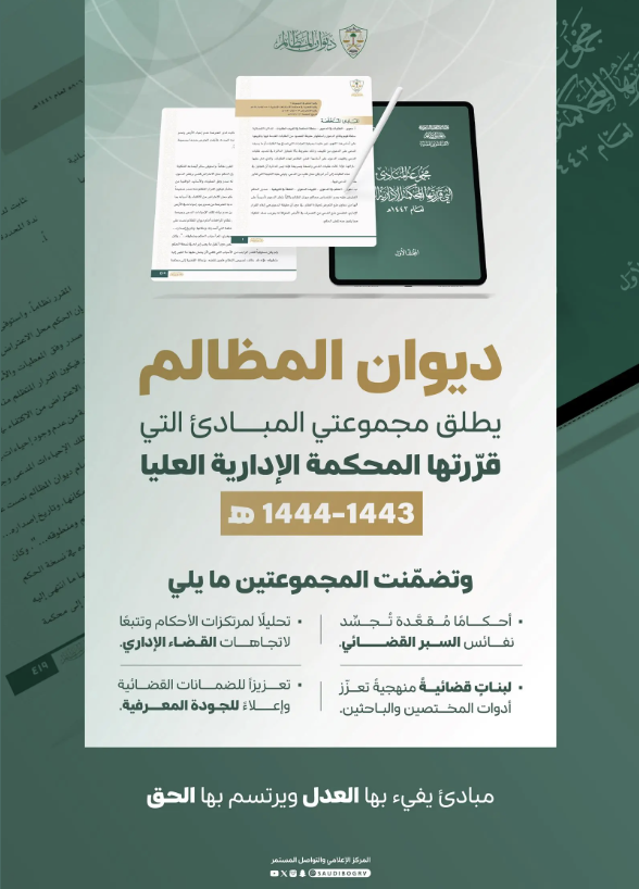 ديوان المظالم يصدر مجموعة مبادئ المحكمة الإدارية العليا