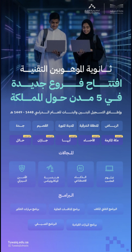 ثانوية الموهوبين التقنية تفتتح فروعها الجديدة في 5 مدن وتطلق التسجيل للعام الدراسي الجديد