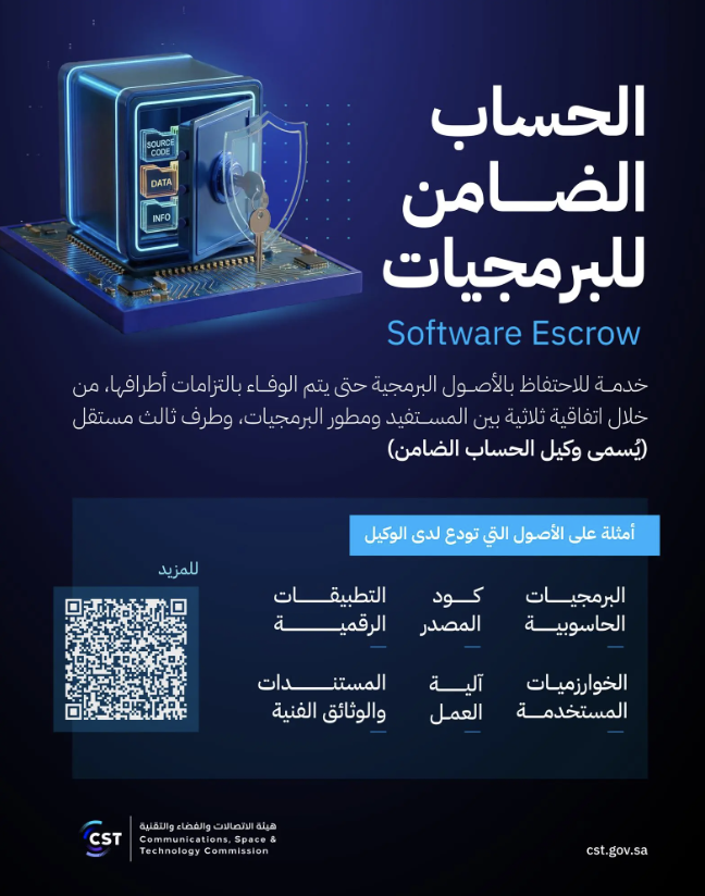 هيئة الاتصالات والفضاء والتقنية تطلق الدليل الإرشادي للحساب الضامن للبرمجيات (software escrow)