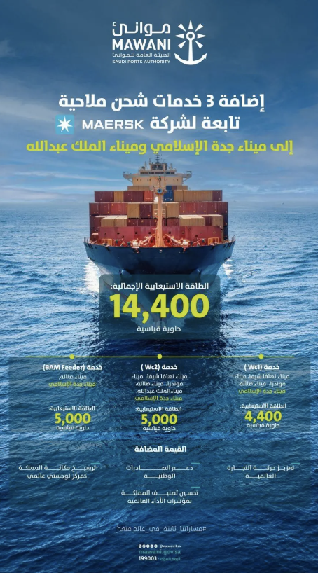"موانئ": إضافة خدمة الشحن "RSX" التابعة لشركة "Marsa Ocean Shipping" إلى ميناء جدة الإسلامي