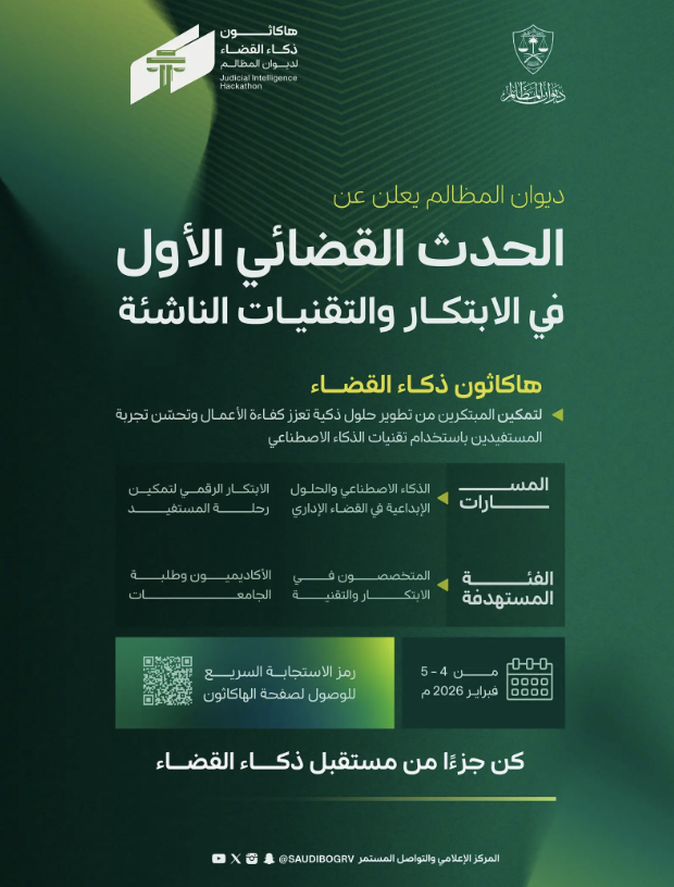 ديوان المظالم يطلق أول هاكاثون قضائي دعمًا للابتكار
