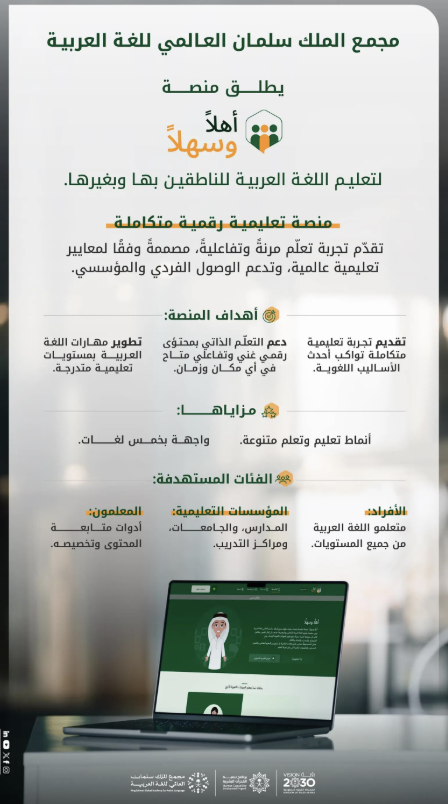 مجمع الملك سلمان العالمي للغة العربية يُطلق المنصة التعليمية "أهلًا وسهلًا"