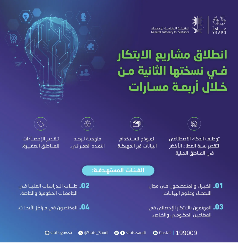 الهيئة العامة للإحصاء تطلق الدورة الثانية لمشاريع مختبر الابتكار الإحصائي