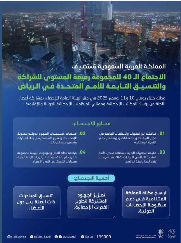 الرياض تستضيف الاجتماع الـ40 لمجموعة الأمم المتحدة رفيعة المستوى في مجال الإحصاءات