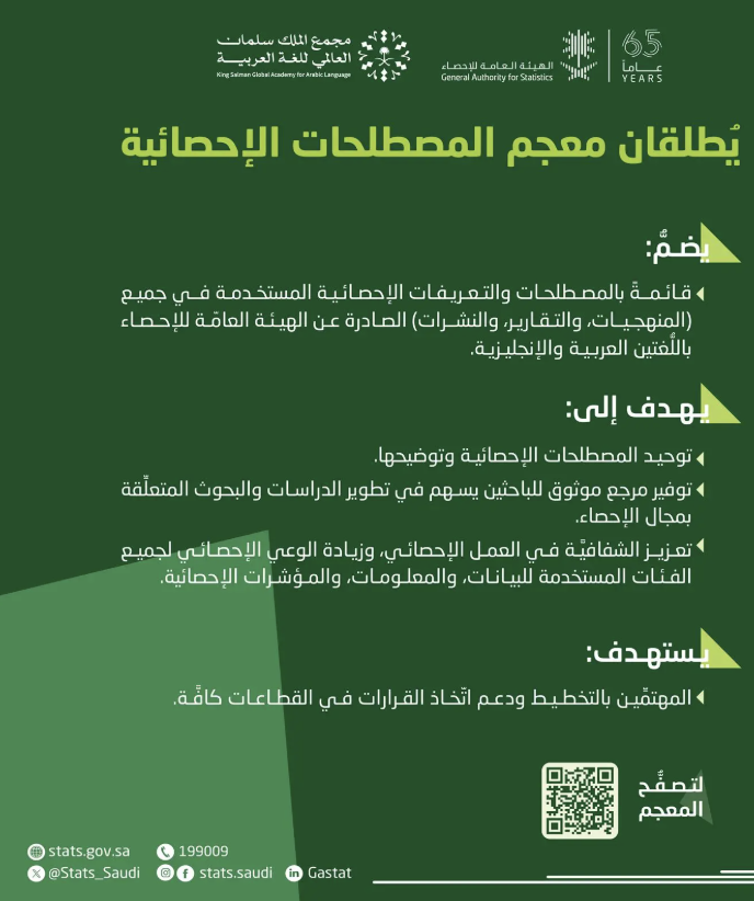 مجمع الملك سلمان العالمي للغة العربية و"هيئة الإحصاء" يُطلقان "معجم المصطلحات الإحصائية"