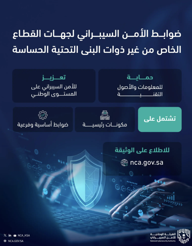الهيئة الوطنية للأمن السيبراني تصدر وثيقة "ضوابط الأمن السيبراني لجهات القطاع الخاص من غير ذوات البنى التحتية الحساسة"