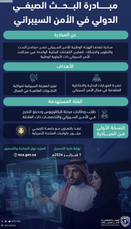 الهيئة الوطنية للأمن السيبراني تطلق مبادرة "البحث الصيفي الدولي في الأمن السيبراني"