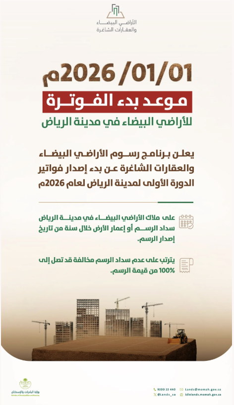 يواصل مركز "إتمام" التابع لـوزارة البلديات والإسكان جهوده في تمكين ملاك الأراضي البيضاء الواقعة داخل النطاقات العمرانية المشمولة بالرسوم، من خلال تقديم منظومة رقمية متكاملة من الخدمات الفنية والإجرائية، التي تنظّم مسارات التطوير، وتربط الملاك بالجهات ذات العلاقة ضمن إطار موحّد وواضح.