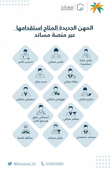 أتاحت وزارة الموارد البشرية والتنمية الاجتماعية الاستقدام لعشر مهن جديدة، وذلك عبر منصة مساند ضمن عمل الوزارة المستمر في تطوير قطاع العمالة المنزلية في المملكة، من خلال تقديم حلول تقنية وخدمات إلكترونية مبتكرة متكاملة؛ لرفع جودة الاستقدام وحفظ الحقوق وتنظيم العلاقة التعاقدية بين جميع الأطراف المعنية و تحقيق أعلى درجات الرقابة. وجاءت المهن الجديدة المتاحة للاستقدام على النحو التالي: عامل عناية شخصية، حارس منزلي، مدرس خاص، خياط منزلي، مدير منزل، مزارع منزلي، قهوجي منزلي، سفرجي منزلي، مباشر منزلي، أخصائي نطق و سمع خاص، مساعد شخصي، عامل مساند، سائقة خاصة. وتعمل منصة مساند على تنظيم وأتمته عملية الاستقدام بشكل متكامل، حيث تسهم بتقديم رحلة استقدام متكاملة تبدأ من خلال تمكين العميل من استعراض كل مكاتب الاستقدام في المملكة واختيار الأنسب له حسب مجموعة من المعطيات؛ ومنها تحديد الجنسية والمهن والأسعار،أو الاطلاع على تقييم العملاء السابقين وغيره دون الحاجة إلى زيارة المكتب.
